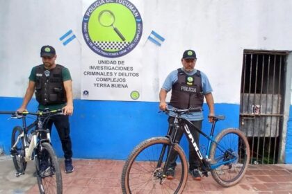 Este domingo, un equipo policial de la Unidad de Investigaciones Criminales yDelitos Complejos de Yerba Buena recuperó en el barrio San Miguel, dosbicicletas que habían sido robadas de un domicilio ub...
