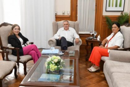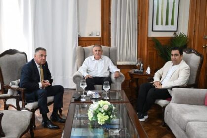 El Gobernador intercambio conceptos con Sergio Mansilla (presidente a cargo) yClaudio Pérez (secretario deL cuerpo deliberativo) sobre los preparativos de laApertura de Sesiones Ordinarias que se real...