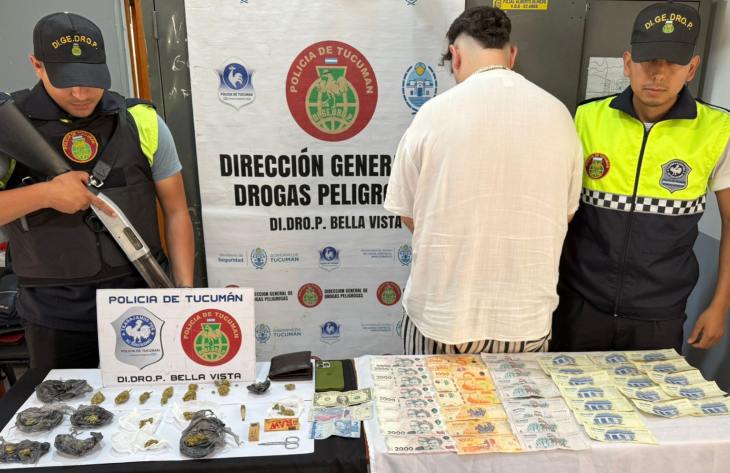 Efectivos de la Dirección Drogas Peligrosas Bella Vista realizaban tareas preventivas por la zona de autopista Tucumán-Famaillá cuando, a la altura de una estación de servicios, advirtieron la presencia del imputado, quien estaba parado al lado de un automóvil y manipulaba los estupefacientes “armando” un cigarro. Al acercarse se identificaron como personal policial, exhibiendo sus credenciales y solicitaron que expusiera los elementos que tenía en sus manos. Así constataron que se trataba de sustancias prohibidas.