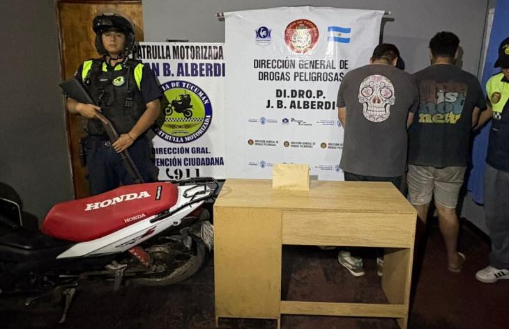 El procedimiento se realizó en calle Cornelio Saavedra de esa ciudad, donde los hombres, de 29 y 39 años, fueron aprehendidos y se secuestraron bochitas de cocaína y una motocicleta marca Honda Wave en la que se movilizaban.