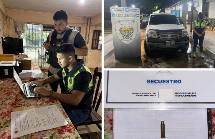 De esa manera, solicitaron medidas judiciales que fueron ejecutadas, este martes, de manera simultánea en diferentes puntos de San Miguel de Tucumán. Durante el operativo, los efectivos hallaron un cartucho calibre 38, teléfonos celulares pertenecientes a los imputados, documentación relevante y una de las camionetas que habrían utilizado los sospechosos, todo lo cual, fue decomisado y será usado como material probatorio en el esclarecimiento del caso. Continuará la investigación para detener a los responsables.