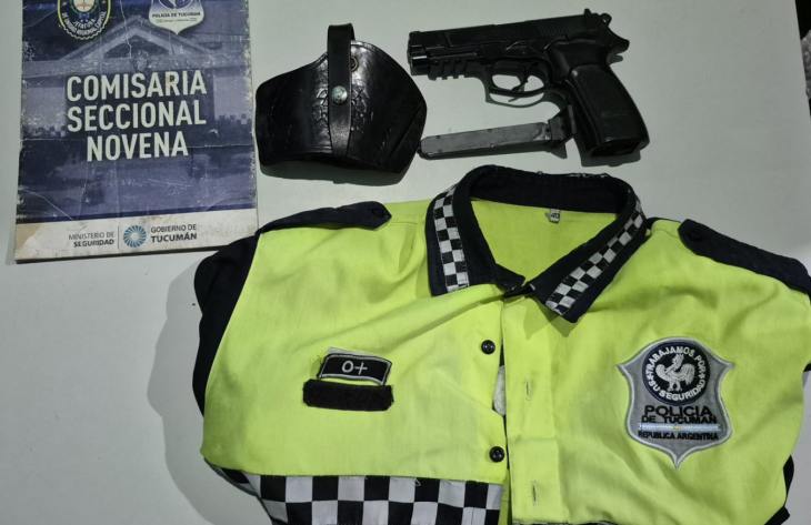 Al acercarse al individuo, los uniformados advirtieron que portaba en la cintura una funda de cuero con una réplica de arma de fuego que funciona con sistema CO₂ pero estaba sin balines y sin su garrafa de gas correspondiente.
