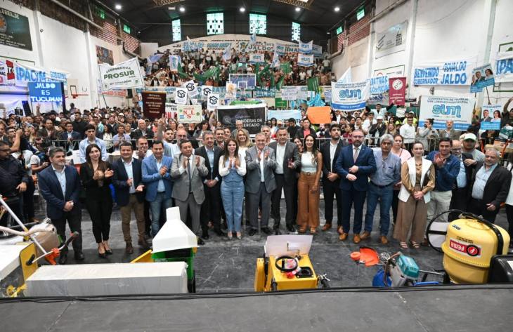 En el Club Avellaneda Central, el Instituto Provincial de Acción Cooperativa y Mutual (Ipacym) celebró el acto “La Economía Social Primero”, donde el gobernador, Osvaldo Jaldo, entregó herramientas y maquinarias a cooperativas y mutuales por un monto total de inversión de $300.946.928.00.
